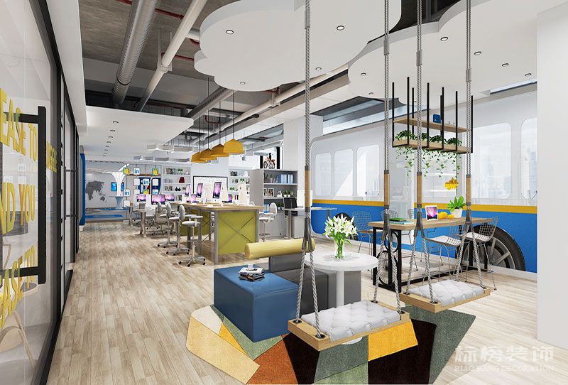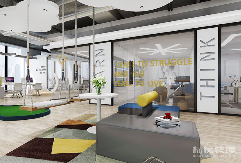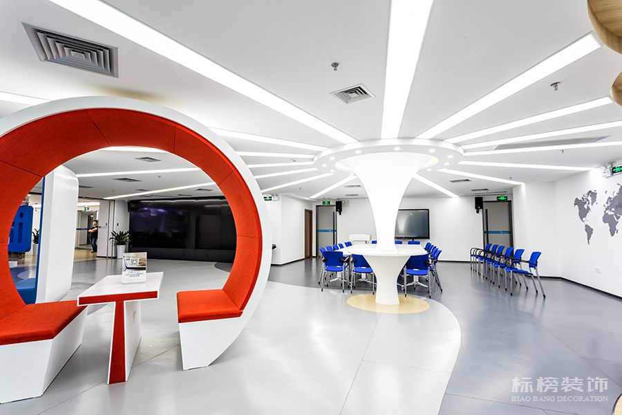 開放的設計思路及風格,為企業形象增光添彩,給員工關懷減壓。歡快的色彩,多元化的造型,以及硬裝及軟裝的搭配設計,更易于工作者調節心情與開拓思路,間接的提升了工作效率及質量。
