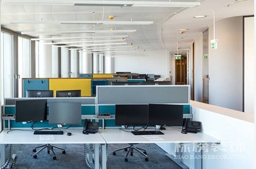 整個辦公空間普遍采用玻璃成品組裝件,在采光方面,也加強了自然光的利用,人工照明也力求柔和不刺眼目。
