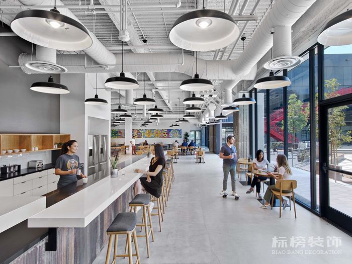 混凝土地板允許員工從辦公桌滑到會議室,為了進一步加強社區意識,各層樓庭院的公共流通環境更加配置了會議空間,展臺座位,讓員工有了不同的視角。這種配置允許員工或訪客在整個建筑物內移動,而不會通過某人的工作環境拖拽分心和噪音。一旦進入團隊工作環境,員工就可以獲得足夠的空間來布置新產品。